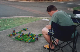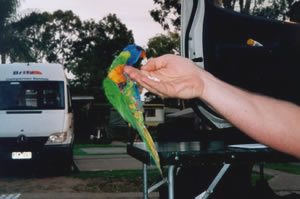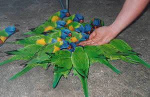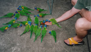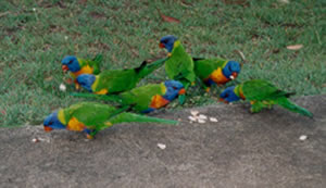 Die Rainbow Lorikeets - hübsche bunte Vögel und ähnlich in Scharen auftretend wie bei uns die Spatzen.